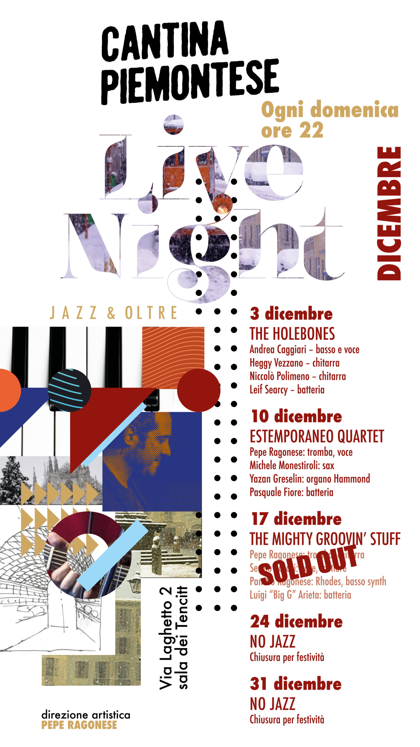 Nota: le serate jazz si svolgono solo nel periodo autunnale e invernale (da inizio ottobre fino a fine aprile).